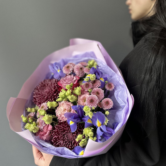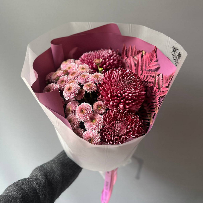 Букет из хризантем Бигуди "Пурпурные завитки"