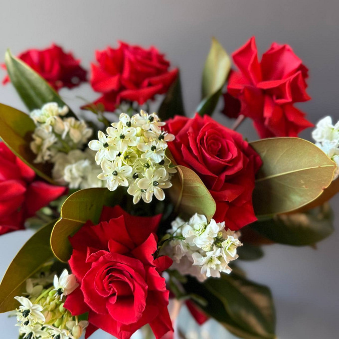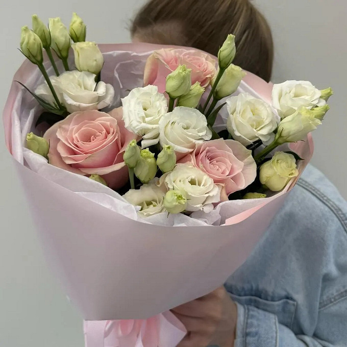 Букет с розами и эустомами
